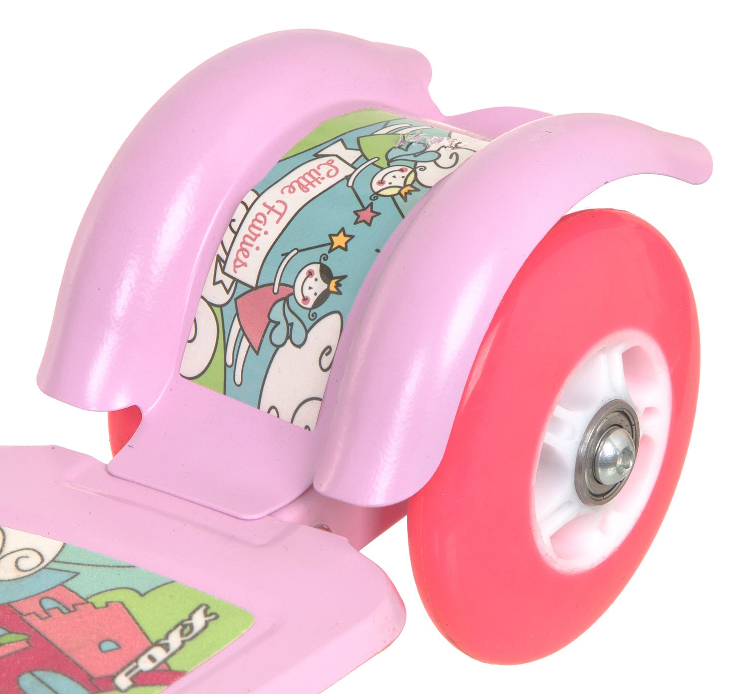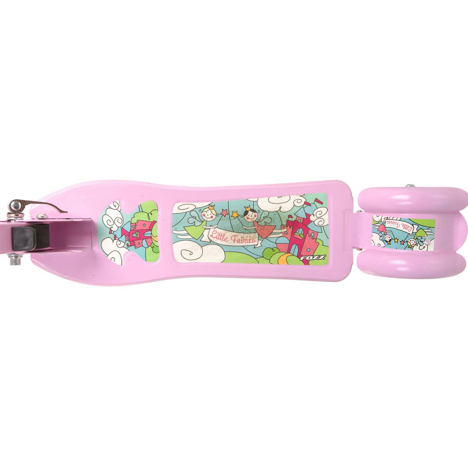 Foxx Fairy Tale 100 мм - детский самокат, предназначенный для самых юных любителей быстрой езды. У самоката 3 колеса, позволяющих ребенку удерживать равновесие. Колеса изготовлены из плотного и упругого материала. Рама самоката изготовлена из прочного, но легкого металлического сплава. Руль самоката регулируется по высоте, позволяя адаптировать компактный транспорт под рост ребенка. За безопасность отвечает ножной тормоз, расположенный над задним колесом, который поможет быстро остановиться перед неожиданным препятствием.