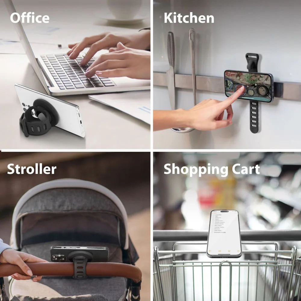Компактная конструкция не загромождает кокпит, а фиксатор удерживает смартфон за верхнюю и нижнюю кромку, не перекрывая экран, кнопки и камеру. Эластичный силиконовый корпус с текстурой удерживает устройство даже при тряске, исключая риск выпадения.