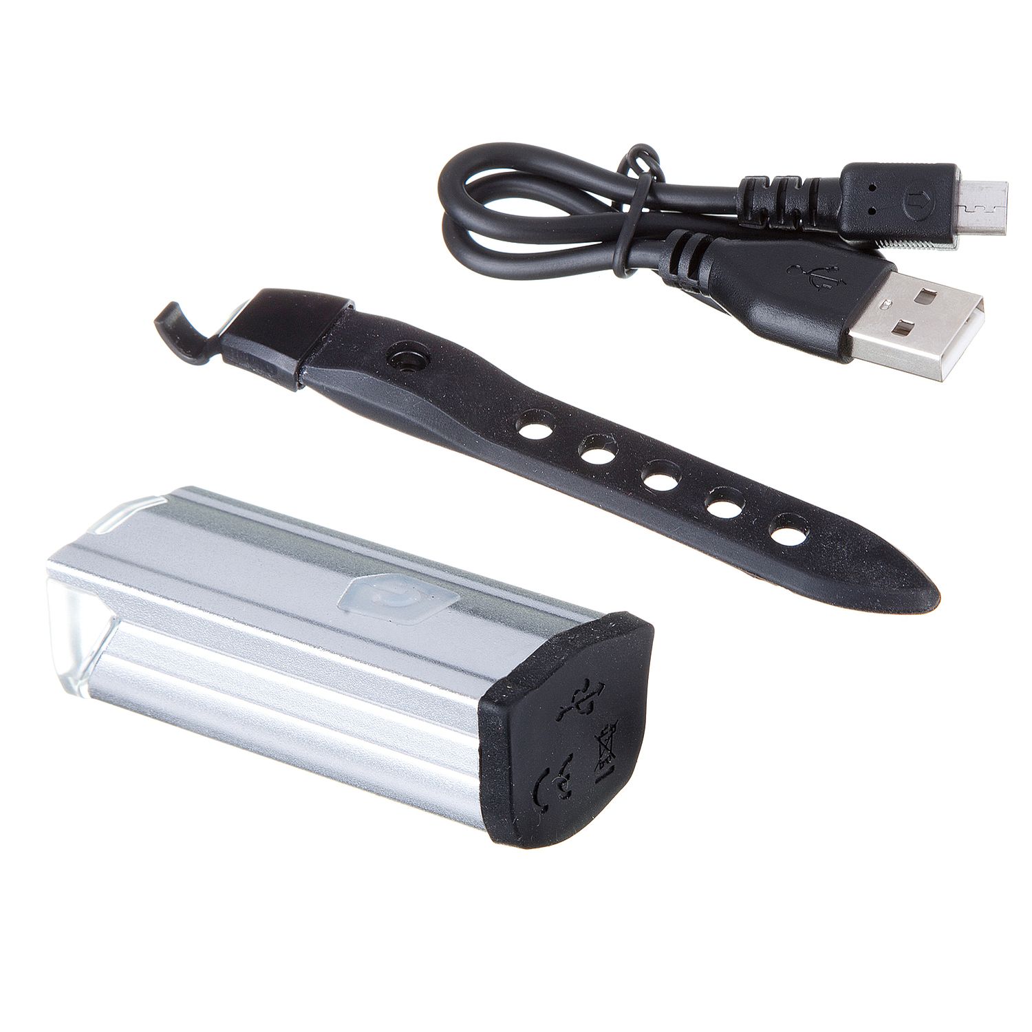 Фонарь велосипедный STG JY7040 передний. Зарядка - USB. Резиновый хомут, алюминиевый корпус. Аккумулятор - 3.7V 550mAh.