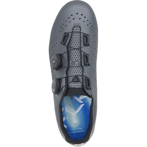 FLR F-9 – флагманская модель шоссейных велотуфель, созданная для гонщиков высокого уровня и уже доказавшая свою эффективность на Гранд-турах. Эта обувь сочетает максимальную жёсткость, анатомически точную посадку и точечную фиксацию, рассчитанную на профессиональную езду. Верх выполнен из цельной микрофибры с шести сетчатыми вставками, создающими равномерный воздушный поток вокруг стопы. Два независимых регулятора Atop позволяют точно настроить посадку в разных зонах – от подъёма до пятки, исключая проскальзывание и давление.