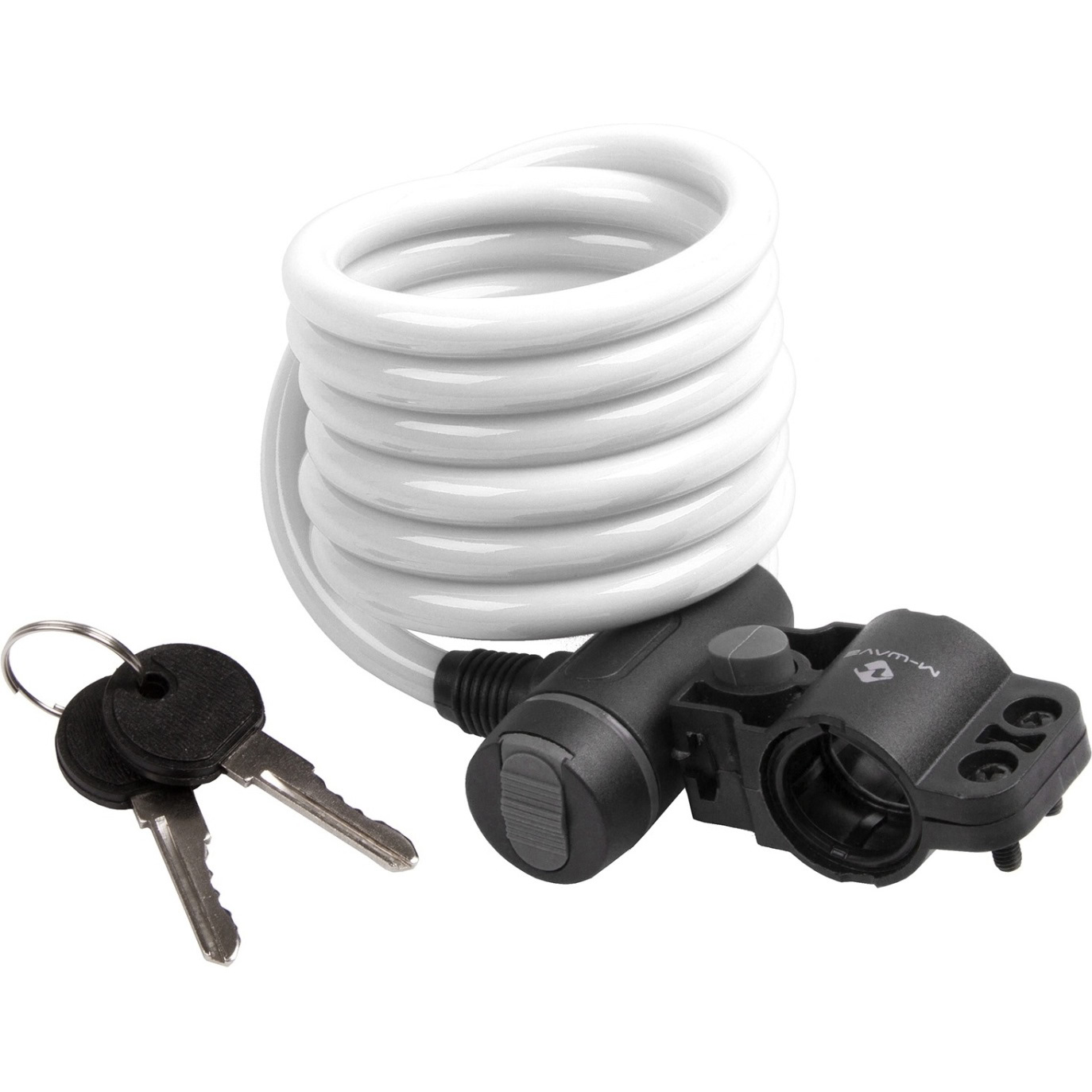 Замок M-Wave тросовый, 10х1800мм, ключ, с защитным колпачком, белый, 5-233862, белый