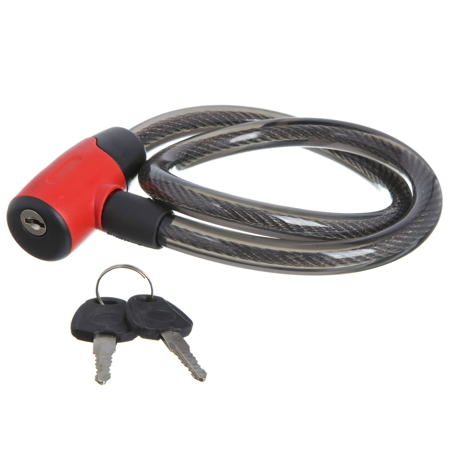 Замок со стальным тросом диаметром 15 мм и длиной 80 см.