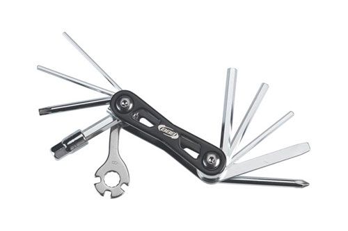 Мультитул для велосипеда включает в себя 12 наиболее необходимых в ежедневном использовании инструментов шестигранников на 2, 2.5, 3, 4, 5, 6 и 8 мм, плоской и крестовой отверток, ключа Torx T-25, гаечного ключа на 8 мм, а также спицных ключей разных размеров.  Инструмент выполнен из калёной инструментальной стали.