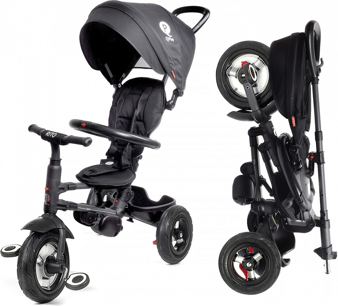 Велосипед трехколесный QPlay Rito, складной, с ручкой управления, черный