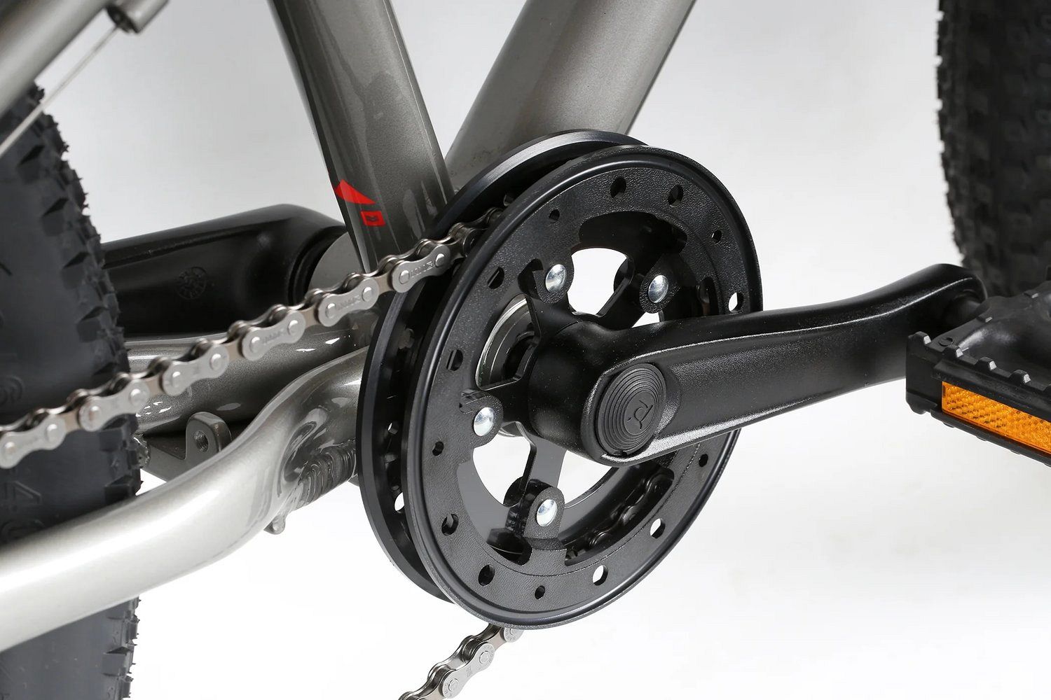 Велосипед оснащен навесным оборудованием Shimano, что гарантирует плавное и легкое переключение скоростей, позволяя маленьким райдерам легко адаптироваться к различным условиям катания. Усиленные алюминиевые обода добавляют дополнительную прочность и долговечность, что особенно важно при активном использовании велосипеда.