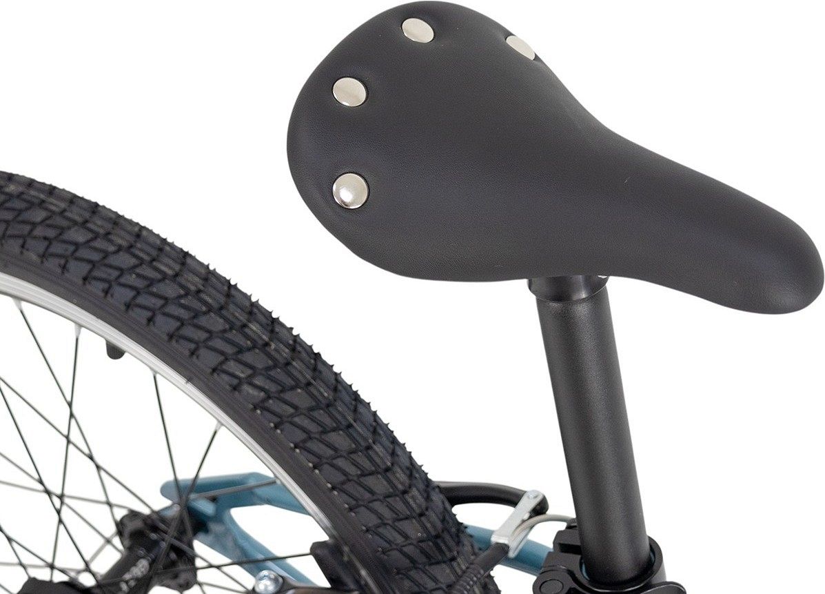 Ободные тормоза гарантируют надёжное торможение, а эргономичное седло и нескользящие педали отвечают за комфорт и безопасность во время поездок. Двойные обода и алюминиевые втулки добавляют прочности конструкции, что позволяет велосипеду выдерживать нагрузки, связанные с активным использованием.
