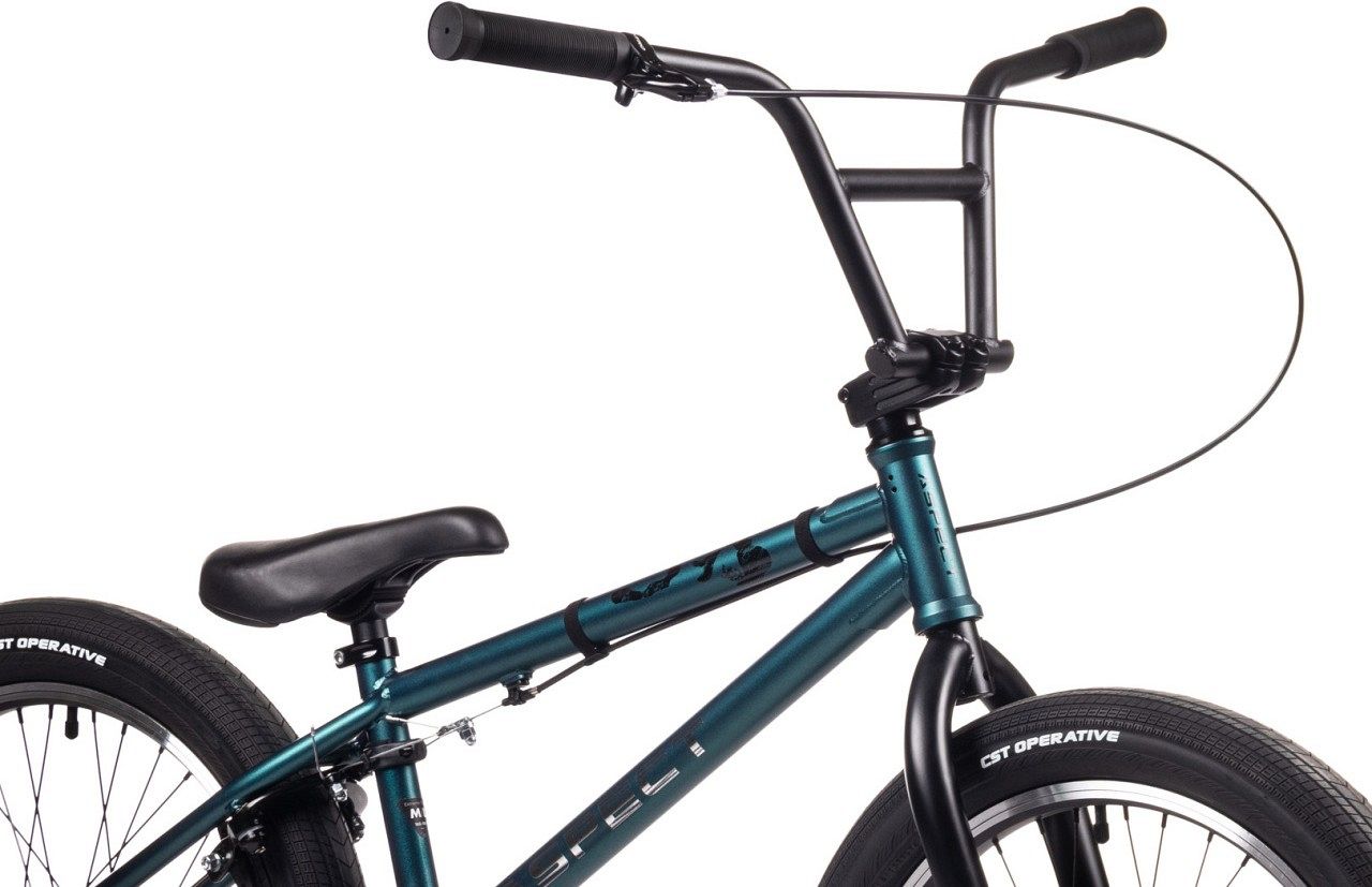 С его 20-дюймовыми колесами и жесткой стальной вилкой, Aspect Street 20 обеспечивает отличную маневренность и контроль над велосипедом во время выполнения трюков и прыжков. Он готов выдержать высокие нагрузки и удары, позволяя вам безопасно и уверенно выполнять самые сложные трюки. Система с одной скоростью и надежный ободной тормоз U-brake Tektro 907A обеспечивают простоту и надежность в управлении велосипедом, позволяя вам быстро реагировать и контролировать скорость. Обода Star Circle J24SG Double Wall и покрышки CST C1809 20x2.40 обеспечивают отличное сцепление с поверхностью и прочность, необходимые для успешного выполнения трюков и прыжков.