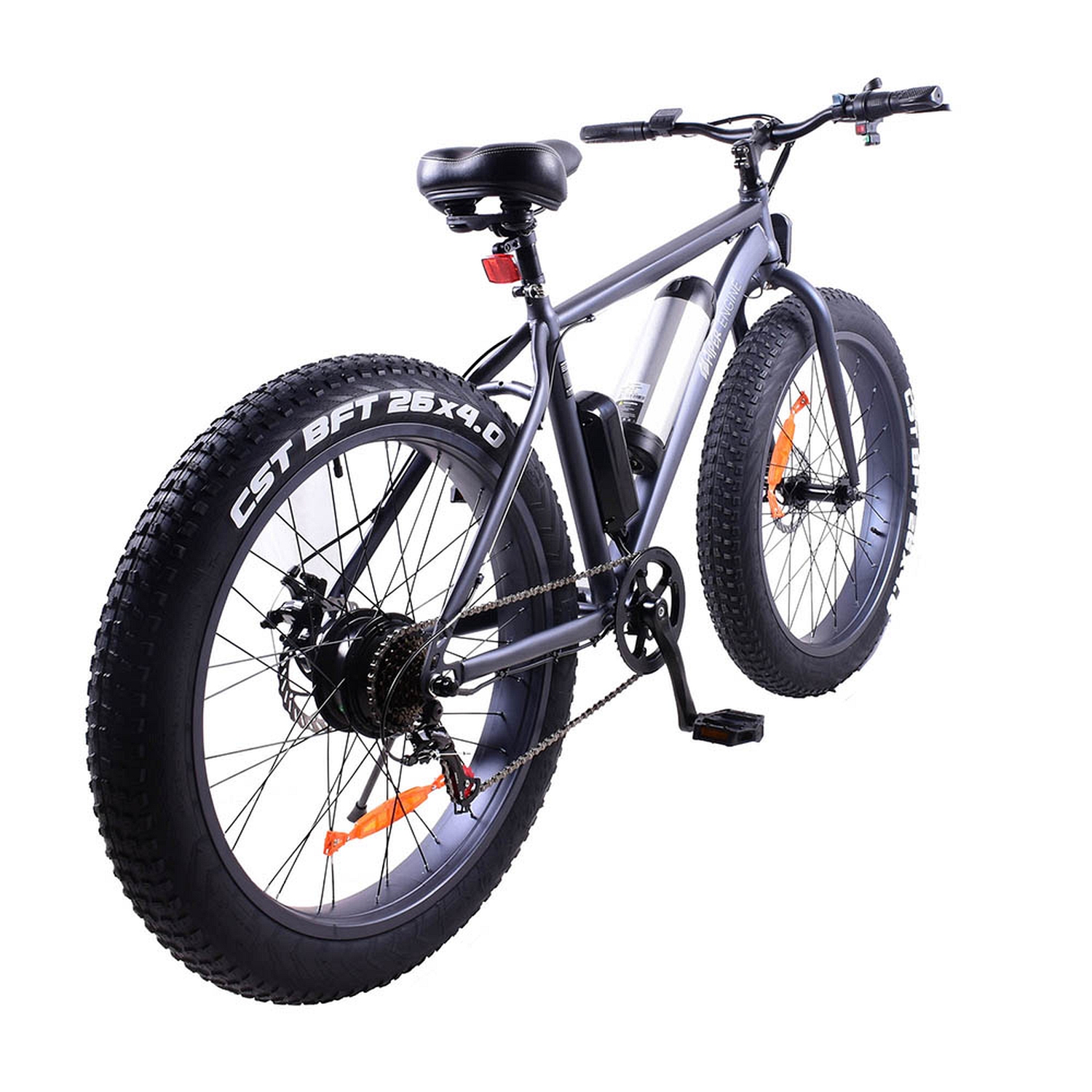 - Широкие шины позволяют поддерживать низкое давление в камерах, а следовательно, легко держать баланс. На широких шинах он не заваливается, стоит уверенно. Прекрасная амортизация как в городе, так и по бездорожью, плитка в городе и щебень на проселочной дороге не является проблемой и конечно же высокая проходимость по песку и грязи.