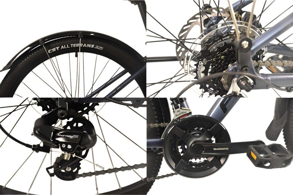 Алюминиевые двойные обода HJC-RP170 и втулки на промподшипниках создают надёжность и долговечность, а дисковые механические тормоза создают мощное и надёжное торможение в любых условиях. Покрышки CST All Terrains 2.1 создают отличное сцепление с дорогой и уверенность на любых поверхностях. Подножка добавляет удобство при парковке велосипеда, а полноразмерные пластиковые крылья защищают от грязи и воды, делая поездки комфортными в любую погоду.