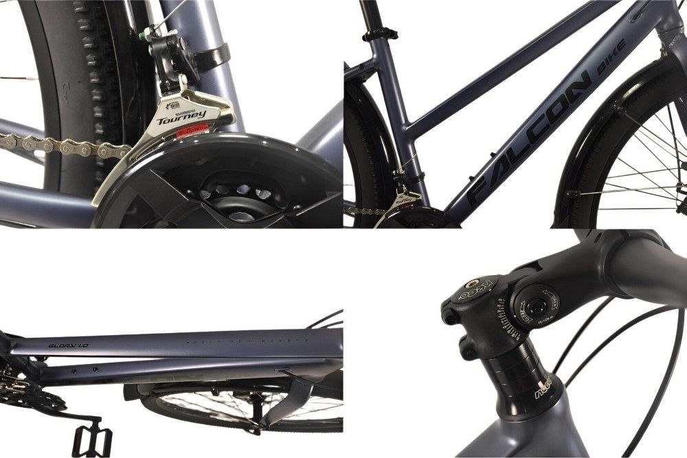 Falcon Bike Glory 1.0 29" оснащён рамой из алюминия 6061 с внутренней проводкой, что придаёт ему элегантный и современный вид. Алюминиевый руль и жёсткая алюминиевая вилка создают дополнительную устойчивость и контроль на любых трассах. Велосипед имеет 21 скорость и задний переключатель Shimano RD-TX800, что позволяет легко адаптироваться к различным условиям и преодолевать любые препятствия.
