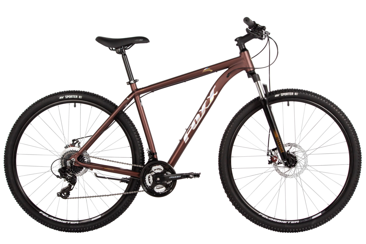 – Пружинная вилка Foxxshox с ходом 100 мм для комфорта на неровностях.