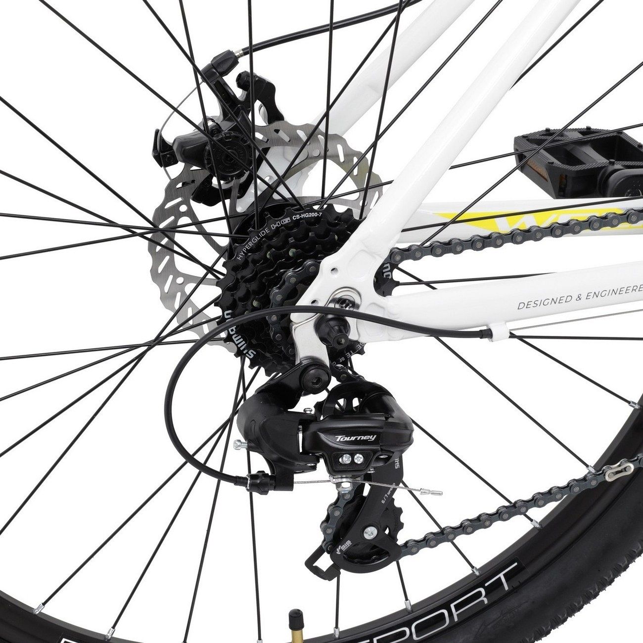 Велосипед оснащен 7-скоростной трансмиссией Shimano, которая позволяет четко и плавно переключать передачи. Дисковые механические тормоза Artek MD-13 дают надежное и эффективное торможение в любых условиях. Покрышки Compass W2003 средним рисунком протектора отвечают за отличное сцепление с грунтом и оптимальный накат. Они гарантируют уверенность и контроль на трассе, позволяя наслаждаться каждым моментом катания.