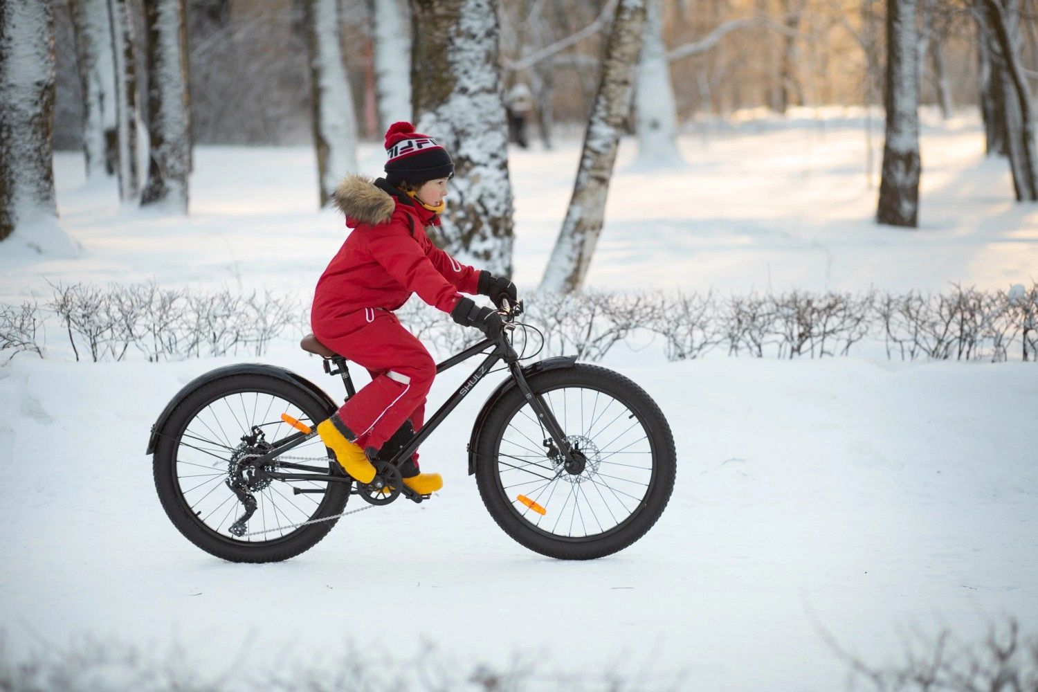 Вес байка всего 12.2 кг делает его идеальным для юных райдеров, которые только начинают своё путешествие в мир велоспорта. 24-дюймовые колеса с широкими трехдюймовыми покрышками обеспечивают плавное и уверенное движение по любым поверхностям, будь то лесные тропинки, песок или снег. А с 8 скоростями, которые легко переключаются, даже самые крутые подъёмы становятся покоримыми, снижая нагрузку на маленькие колени.