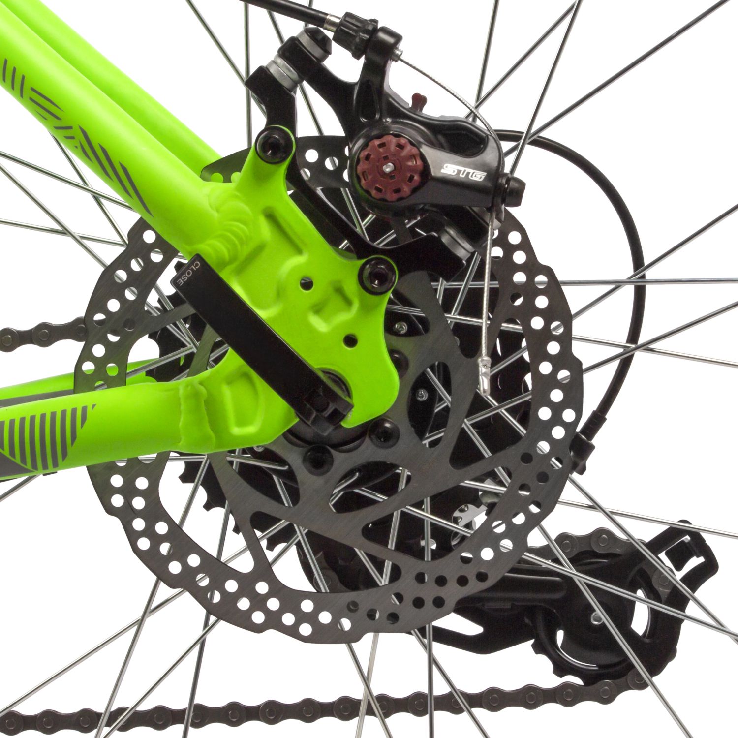 Модель тормозов, установленных на велосипеде. Тормоза различаются классом оборудования, эффективностью работы на больших скоростях и при высоких нагрузках, материалами, весом.