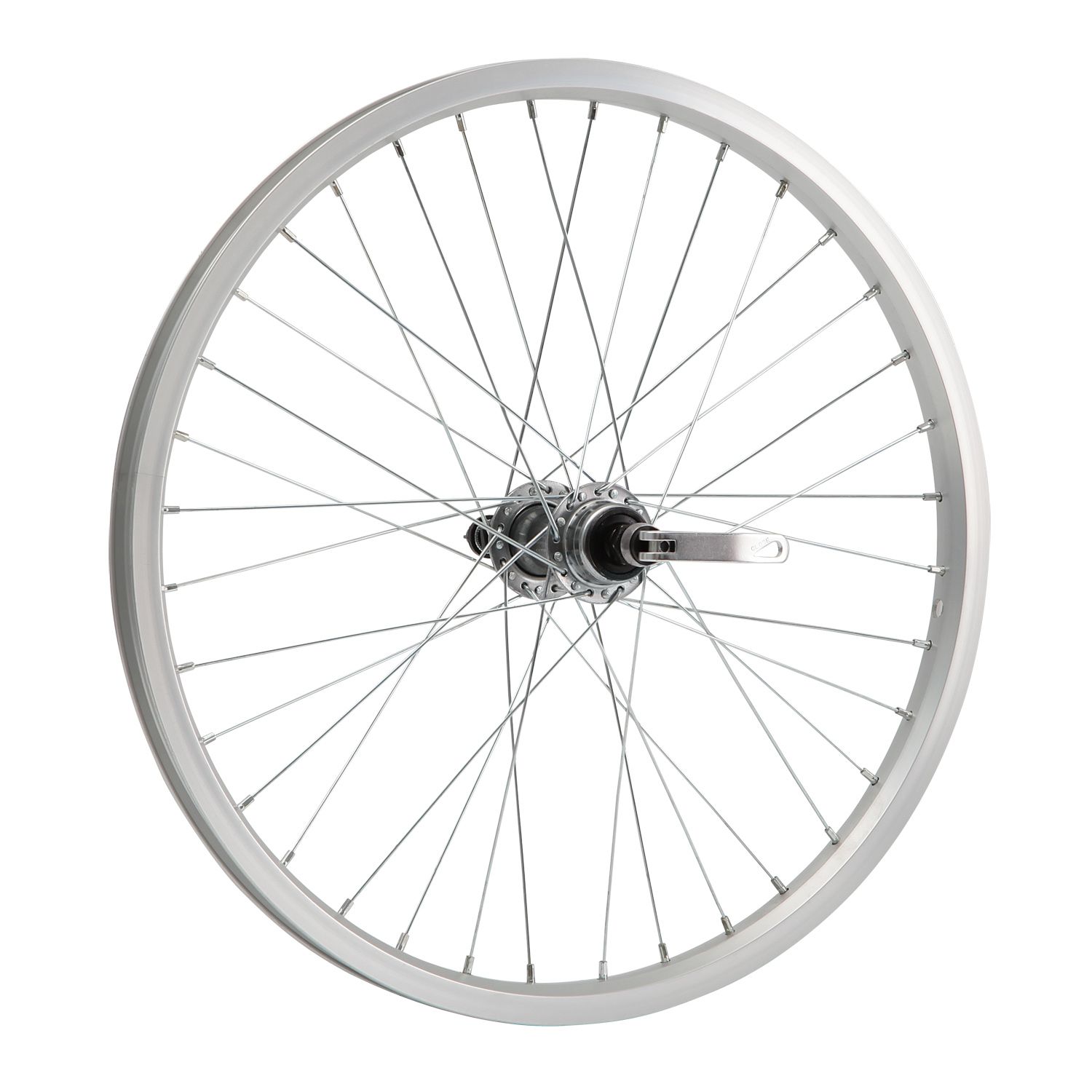 Колесо 20 заднее без резины. Одинарный алюминиевый обод под 32 спицы. Втулка сталь под трещотку 6 скоростей, эксцентрик.