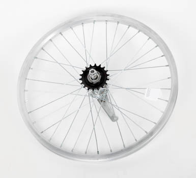 Колесо 20" заднее в сборе(без резины) с одинарным алюминиевым ободом на 36 спиц со втулкой под гайку.