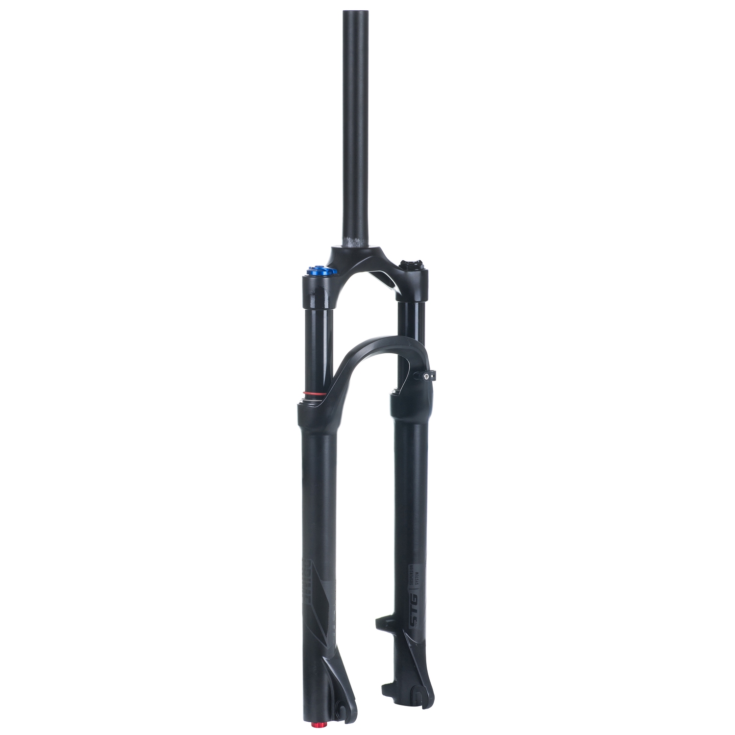 Воздушно-масляная амортизационная вилка STG PRIME RACE для колес 29 дюймов с функцией регулировки жесткости, отскока и полной блокировки. Алюминиевый шток 1 1/8 длиной 250мм. Крепление под дисковый тормоз