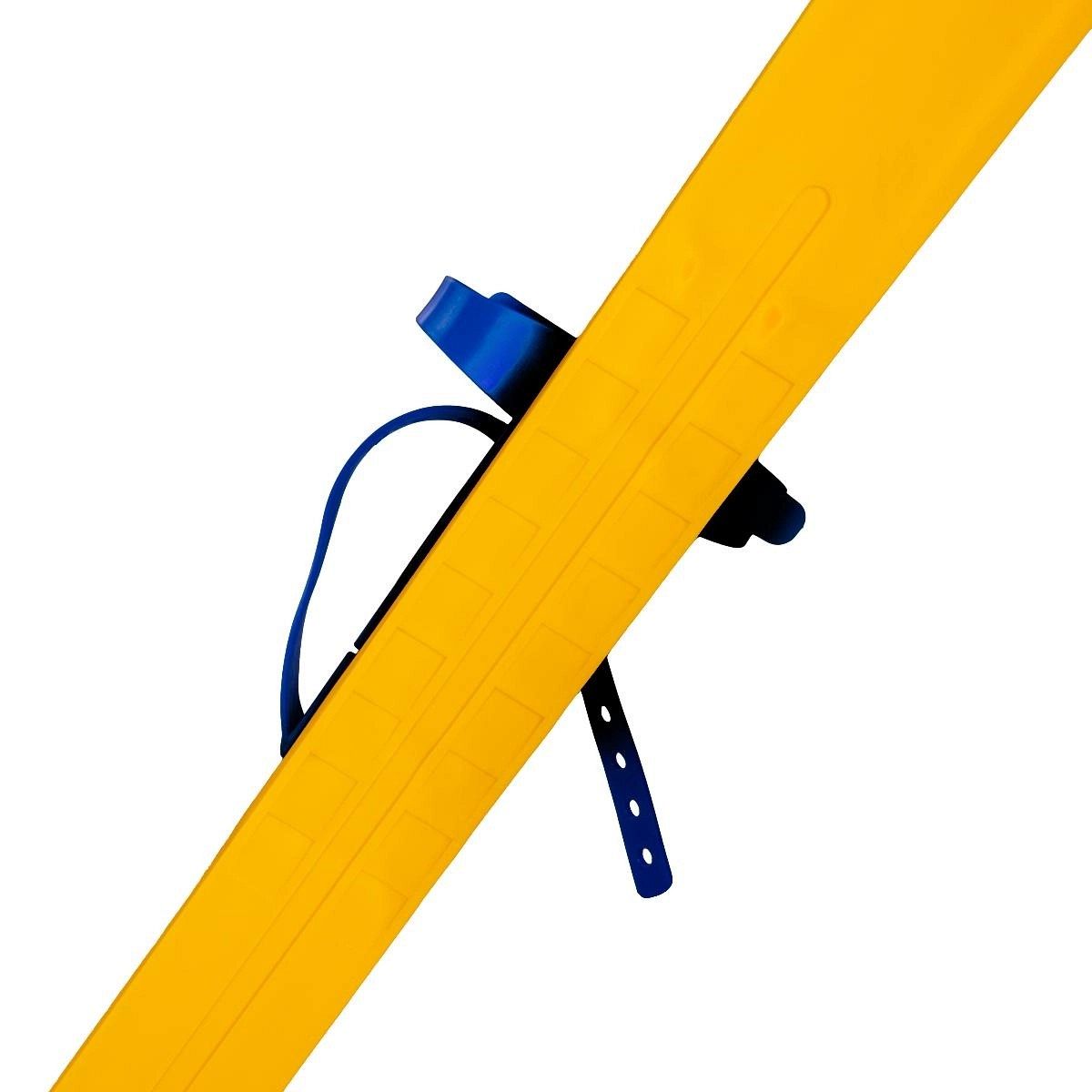 Комплект оснащён удобными пластиковыми креплениями, рассчитанными на повседневную обувь размером от 24 до 31. Глубокие пластиковые ремешки надёжно фиксируют ногу, обеспечивая безопасность и комфорт. Алюминиевые лыжные палки с пластиковыми травмобезопасными наконечниками добавляют уверенности маленьким лыжникам, снижая риск травм.