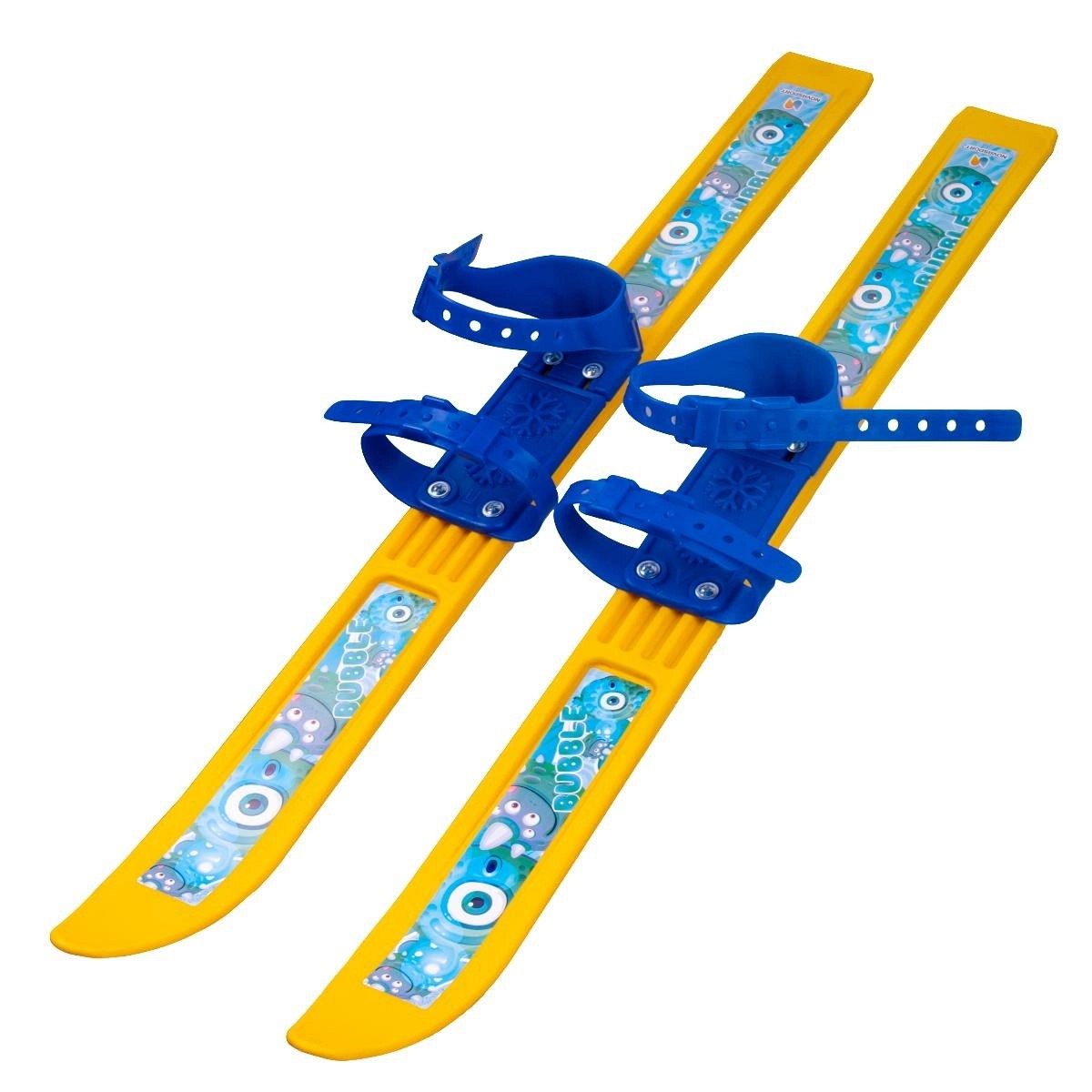 Лыжи изготовлены из морозостойкого полипропилена, который отличается гибкостью и стойкостью к истиранию, а также сохраняет свои свойства при температуре до -20°С. Скользящая поверхность полоза выполнена из того же материала, что способствует лёгкому скольжению. Полиэтиленовая наклейка устойчива к влаге, что увеличивает долговечность лыж.