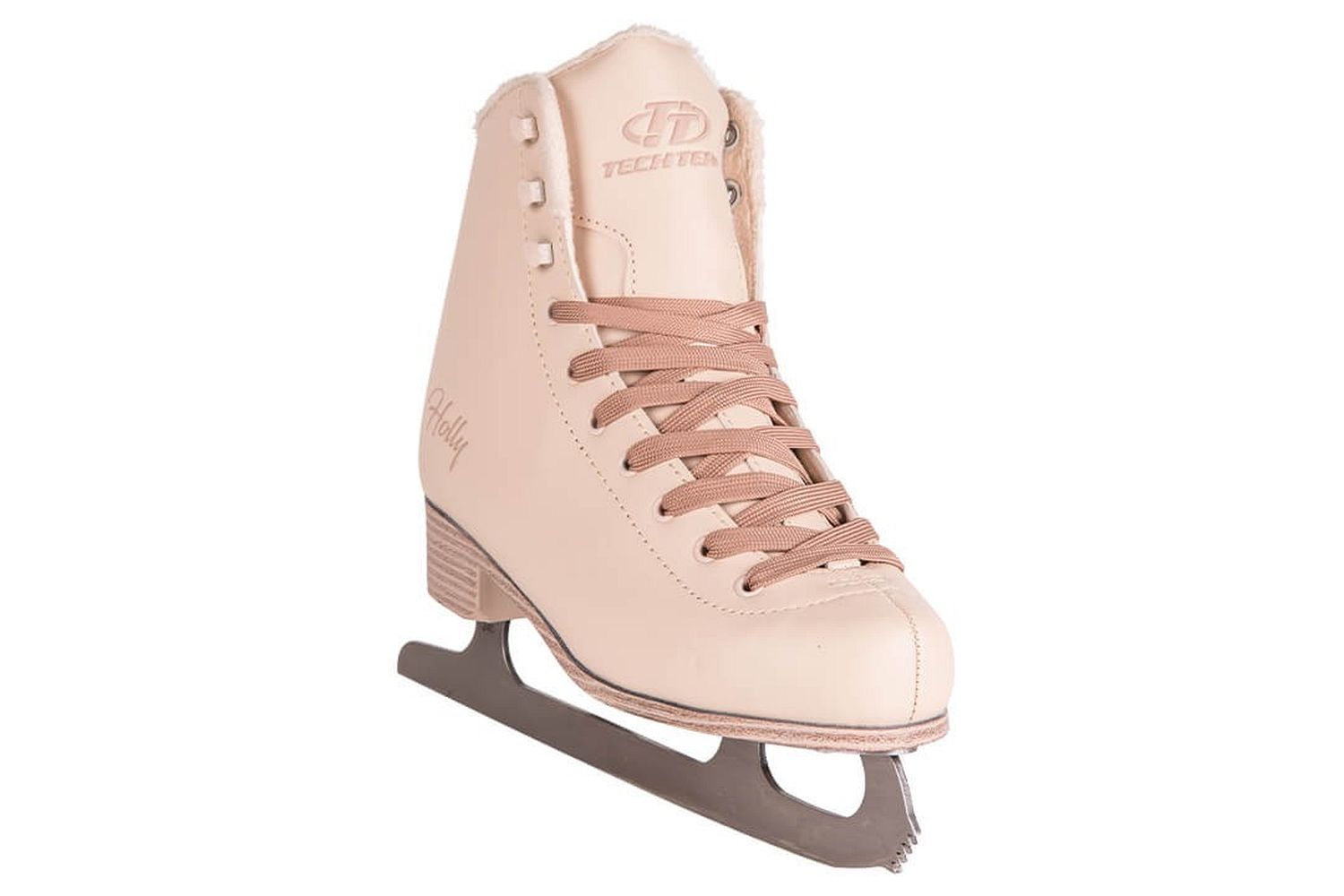 Практичные женские фигурные коньки с ботинком из морозостойкой искусственной кожи и подкладкой из короткого синтетического меха.