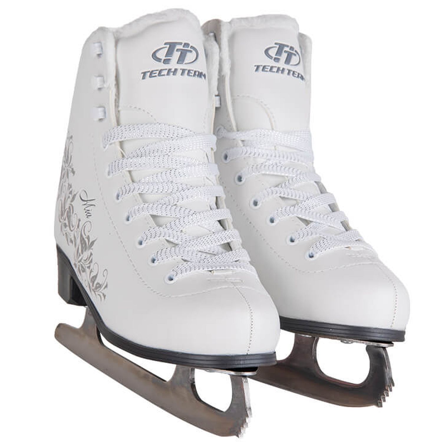 Фигурные коньки Mia от российского производителя Tech Team. Выполнены очень филигранно и просто. Размерный ряд коньков от 32 до 42, подойдут как взрослым, так и подросткам. Коньки очень удобные и комфортно сидят на ноге. Современный утеплитель из короткого синтетического меха не даст замерзнуть ногам. Надеваются коньки очень легко и просто, благодаря шнуровке и верхним крючкам. Эргономичности в управлении добавит полипропиленовая подошва на каблуке. Шлифованное лезвие конька из нержавеющей стали защищено от коррозии.