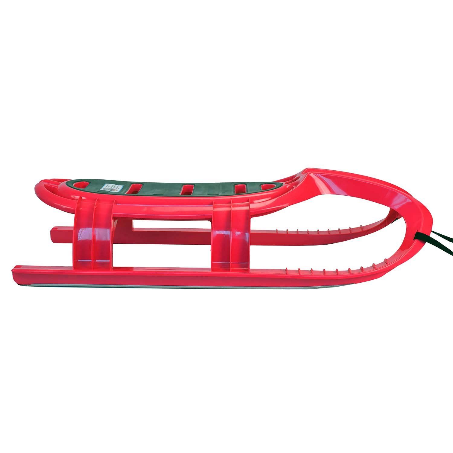 На полозьях расположены пластины из нержавеющей стали, которые улучшают скольжение и защищают санки от повреждений